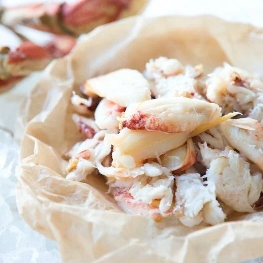 Our Dungeness Meat features 60% body meat and 40% leg, knuckle and merus meat, with the body meat separated by parchment paper. Hailing from the west coast of the US and Canada, this crab meat is sweet and delicate in flavor, and can be used in both cold and cooked applications.
